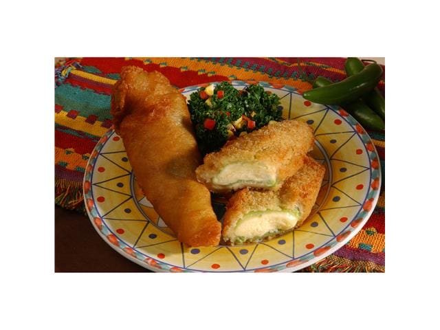 These Chile Rellenos are made using the finest quality New Mexico, USA grown green chile peppers, roasted and stuffed with monterey jack cheese. Delight your taste buds with one of New Mexico’s most popular delicacies. Premium, plump Flame Roasted Green Chile stuffed with cheese and battered, ready to fry or bake. Medium hot heat level flavor. frfrNo more messy ingredients and flops with your egg batter. Great as a main dish or as a side dish. One order contains four rellenos.  Made in New Mexico, USA, utilizing New Mexico green chile. Top these rellenos with our delicious red or green chile salsas or sauces, and side with our authentic pinto beans.