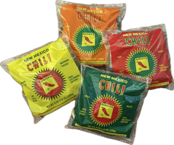 These peppers were grown, harvested and sun-dried in Hatch, New Mexico. Our 1/2 lbs bags of red chile pods come in four heat levels or flavors: Mild, Medium, Hot and Extra-Hot.