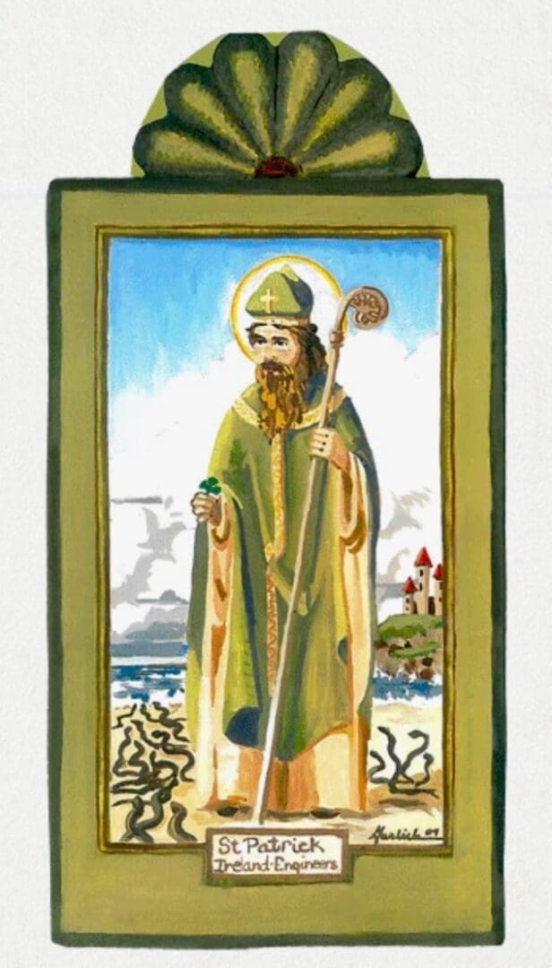 ST. PATRICK – PATRON SAINT OF ENGINEERS – WOODEN SANTA FE RETABLO